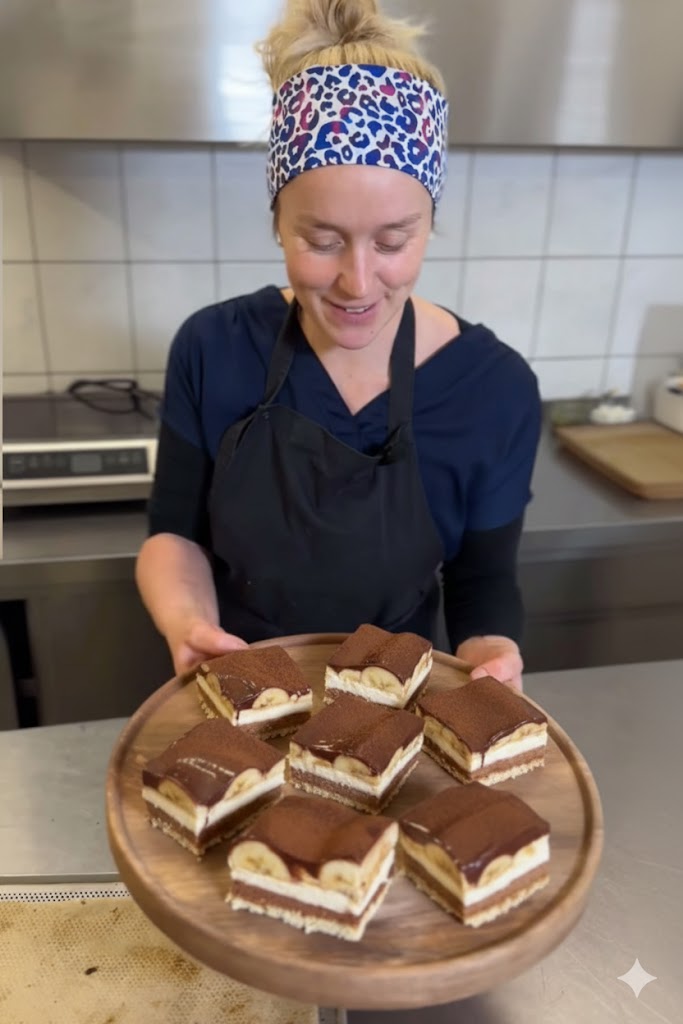 Banana-Split-Schnitten sind ein echtes Highlight für alle, die cremige Kuchen mit Schokolade und frischen Früchten lieben. Der luftige Biskuit, die cremige Schokosahne, die feine Schmandcreme und die frischen Bananen ergeben zusammen ein harmonisches Dessert, das sowohl optisch als auch geschmacklich überzeugt.